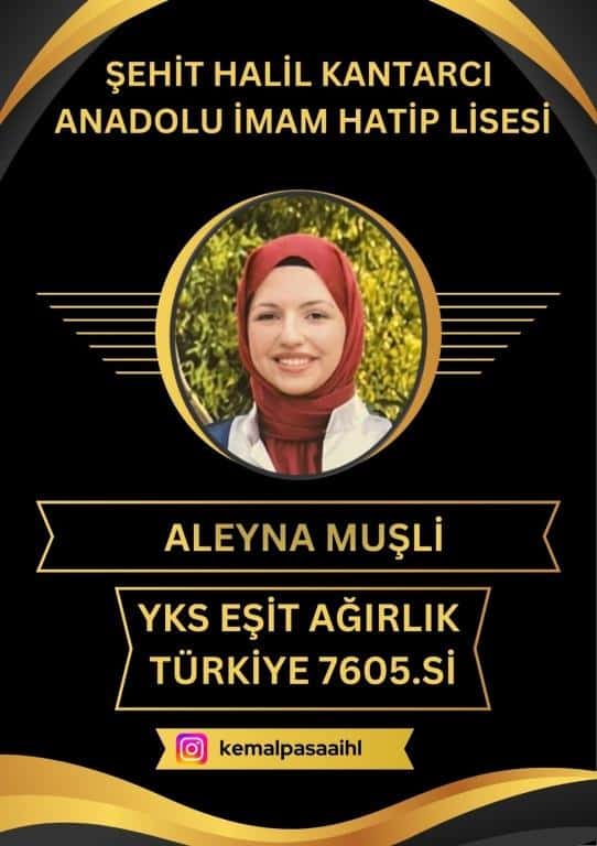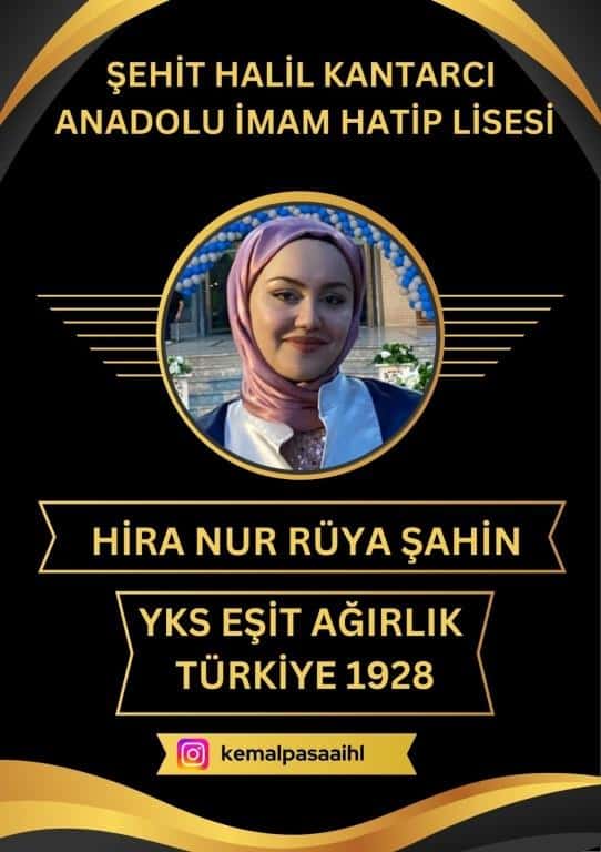 Okulumuz öğrencileri YKS sınavında başarılarıyla ilçemizde göz doldurdurarak okulumuzu ve velilerini gururlandırdılar. Öğrencilerimiz Türkiye geneli eşit ağırlıkta Hiranur Rüya ŞAHİN 1928.nci ve Aleyna MUŞLİ 7605.nci sözelden de Muhammed Mustafa CANBAZ 7485.nci olarak büyük başarı elde ettiler. Öğrencilerimizi yetiştiren öğretmen ve ebeveynlerini kutluyor başarılarının devamını diliyoruz.